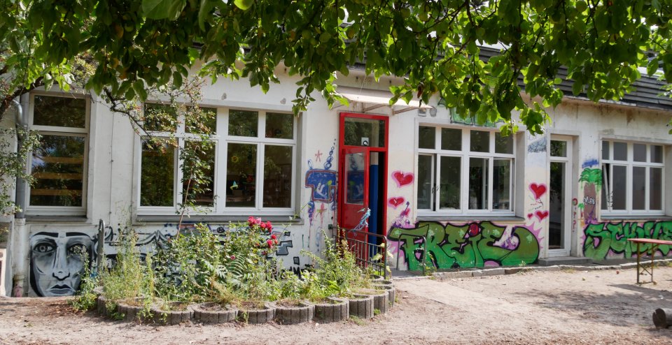 Die Schule befindet sich in Berlin-Tempelhof auf dem Gelände der UFA-Fabrik, einer kleinen kulturellen und ländlichen Oase mitten in der Großstadt.